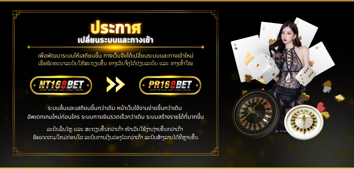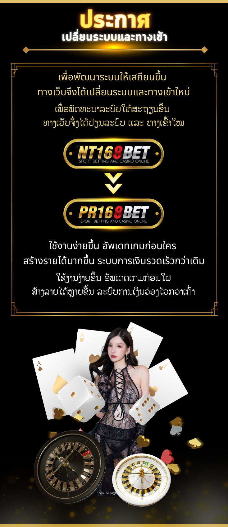 NT168BET ລວມເກມຄາສິໂນ ພະນັນອອນລາຍສຸດຮິດ ຕິດອັນດັບຫຼາກຫຼາຍຄ່າຍມາໃຫ້ທ່ານຫລີ້ນເເບບບໍ່ຮູ້ຈົບ ຕະຫຼອດ24ຊົ່ວໂມງ ພ້ອມບໍ່ລິການສຸດພິເສດຈາກ ທາງທີມງານທີມີຄຸນນະພາບຈະດູເເລ່ທ່ານເປັນຍ່າງດີ ທີ່ LINE:@pr168bet ເຮັດໃຫ້ການຫລີ້ນຂອງທ່ານບໍ່ ມີສະດຸດສຸດປະທັບໃຈຍ່າງບໍ່ມີໃຜເຈີ້ມາກ່ອນ